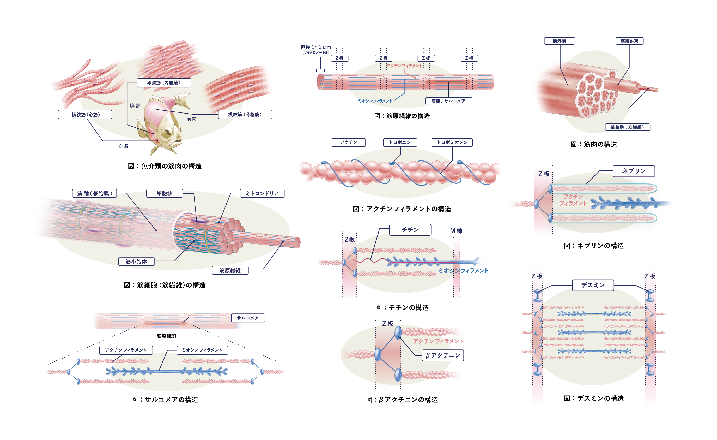 教材内図版(細胞、核酸、ATP、筋肉などの説明)